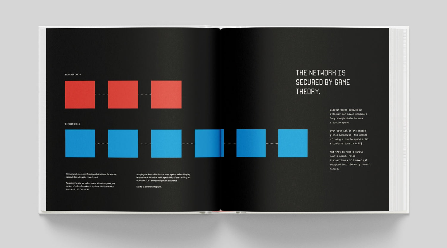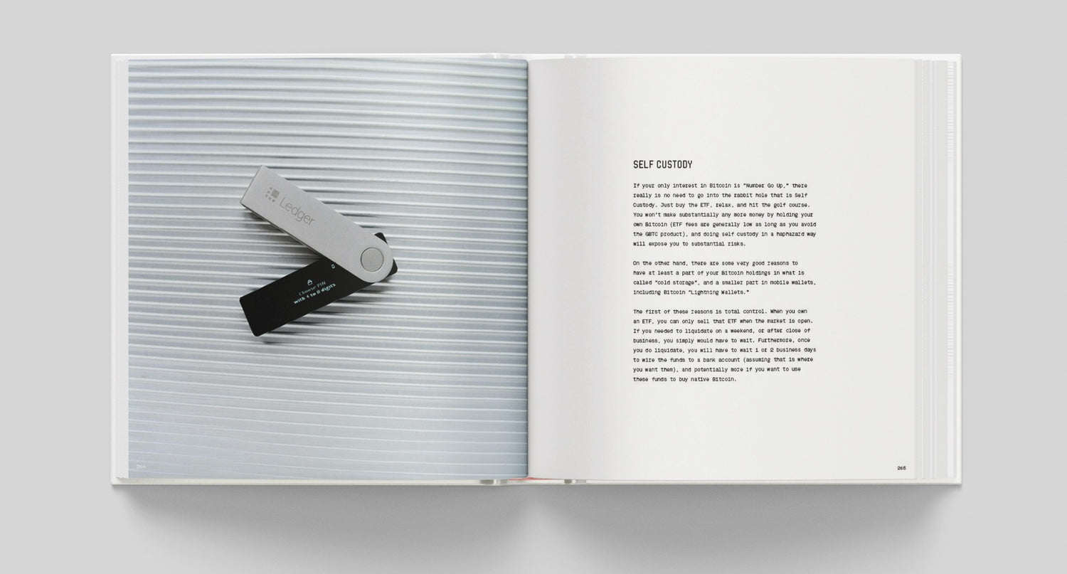 Meticulously crafted with hundreds of hours of research, design, and high-resolution graphics, this unique collectible tells the story of Bitcoin like never before. Printed on ultra-high quality matte text 80-pound Mohawk Superfine paper and measuring 9.25x12 inches, it features a luxurious brushed linen cover.